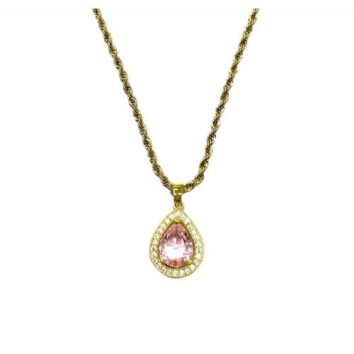 Kostibas 1013-976XR, Κολιέ, Με μοτίφ, Ατσάλι, Χρυσό με ροζ δάκρυ