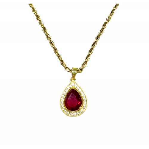 Kostibas 1013-976XD, Κολιέ Με μοτίφ, Ατσάλι, Χρυσό με μπορντώ δάκρυ