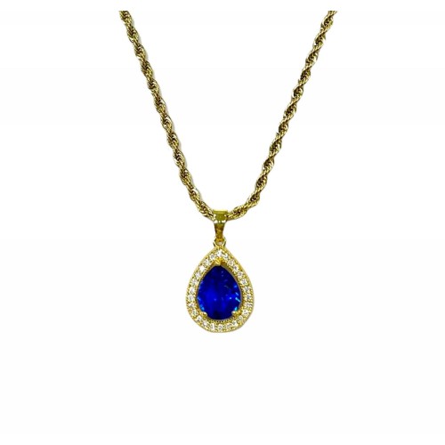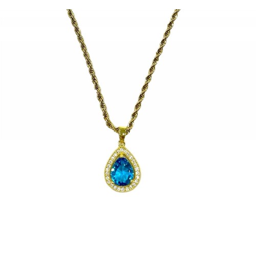 Kostibas 1013-976XC, Κολιέ, Με μοτίφ, Ατσάλι, Χρυσό με γαλάζιο δάκρυ