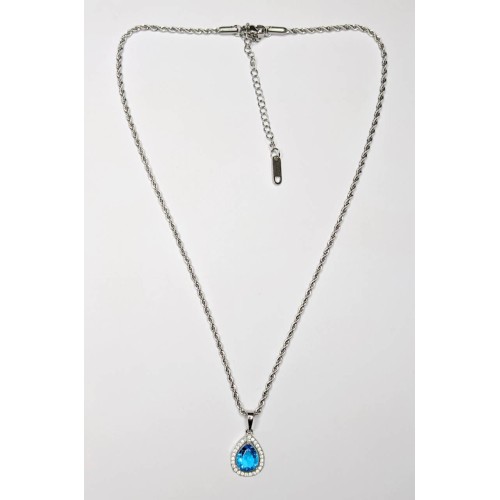 Kostibas 1013-976AC, Κολιέ, Με μοτίφ, Ατσάλι, Λευκό με γαλάζιο δάκρυ