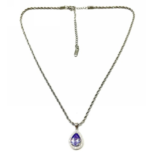 Kostibas 1013-976AJ, Κολιέ, Με μοτίφ, Ατσάλι, Λευκό με μωβ δάκρυ