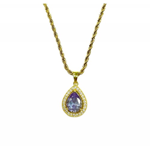 Κολιέ Ατσάλι Ατσάλι Δάκρυ Με μοτίφ δάκρυ copper+glass MHK:40+7CM ΧΡΩΜΑ:18k gold ΧΡΩΜΑ2:Μωβ..