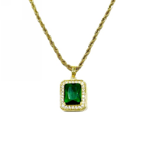 Kostibas 1013-979XP, Κολιέ, Ατσάλι, Χρυσό, Μοτίφ τετράγωνο πράσινο