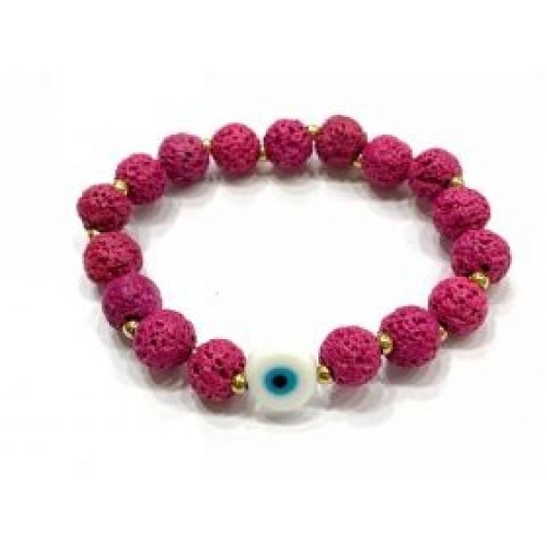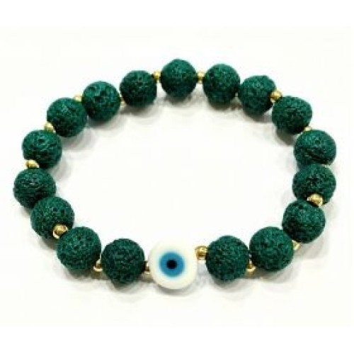 Βραχιόλι με πέτρα λάβα τεχνητή ηφαιστειακή #8 και γυάλινο μάτι #12..