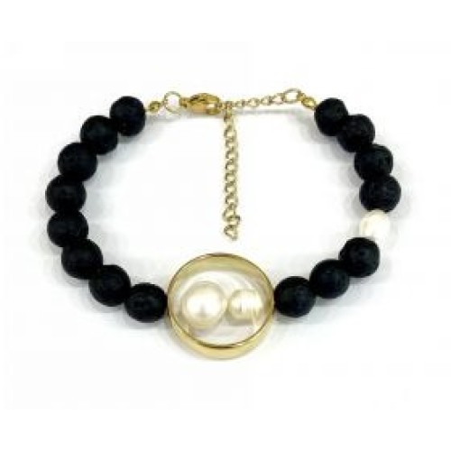 Βραχιόλι με πέτρα 4mm και μαργαριτάρια 6-7mm..