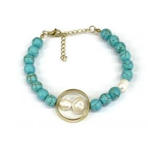 Kostibas 1514-903LD, Βραχιόλι, Πέτρα, Μαργαριτάρια, Τιρκουάζ