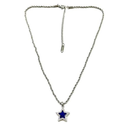 Kostibas 1013-980AC, Κολιέ, Ατσάλι, Λευκό με μοτίφ γαλάζιο αστέρι