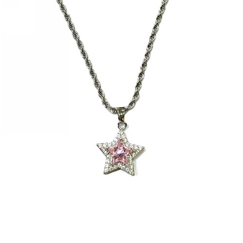 Κολιέ Ατσάλι Ατσάλι Με στρας Με μοτίφ αστέρι copper+glass MHK:40+7CM ΧΡΩΜΑ:White k ΧΡΩΜΑ2:Ροζ..