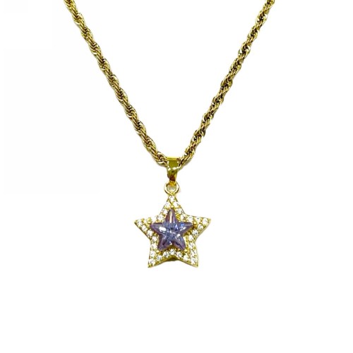 Κολιέ Ατσάλι Ατσάλι Με στρας Με μοτίφ αστέρι copper+glass MHK:40+7CM ΧΡΩΜΑ:18k gold ΧΡΩΜΑ2:Μωβ..