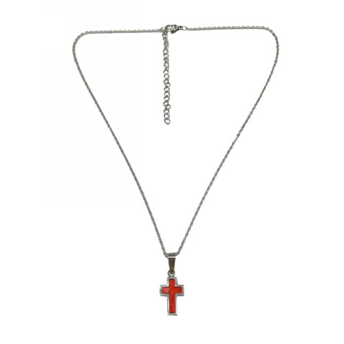 Kostibas 1313-701AU, Μενταγιόν Σταυρός, Ατσάλι, ΤΕ, Ασημί/Κόκκινο