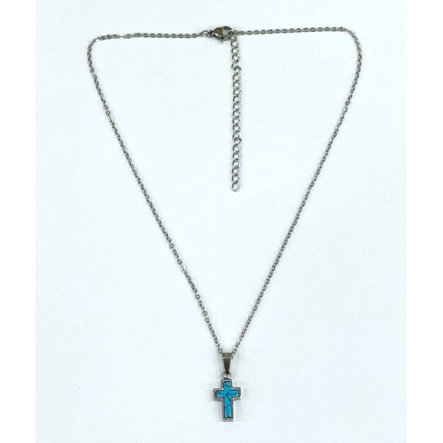 Kostibas 1313-701AT, Μενταγιόν Σταυρός, Ατσάλι, Ασημί/Τιρκουάζ