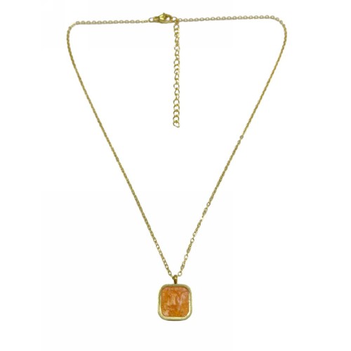 Κολιέ Ατσάλι Ατσάλι Με μοτίφ Με τετράγωνο ατσάλινο μοτίφ ΧΡΩΜΑ:18k gold / Πορτοκαλί..