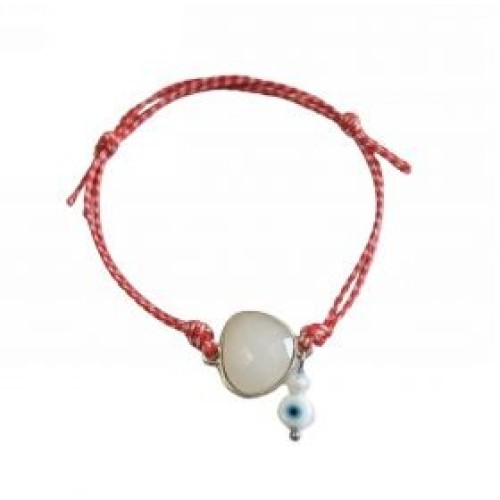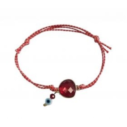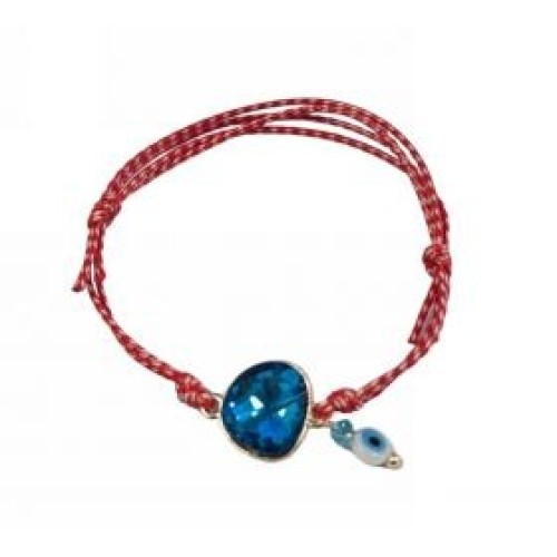 Βραχιόλι Μάρτης με σχοινάκι, λοξό κόκκινο μοτίφ, μάτι #6 και κρυσταλλάκι #4..