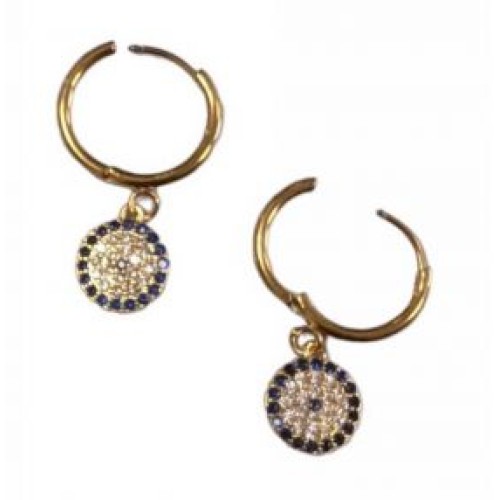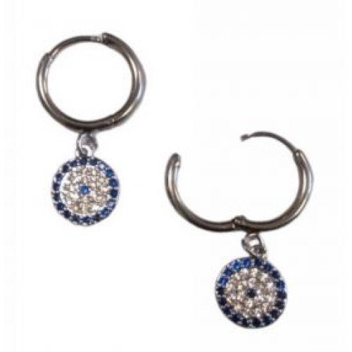 Σκουλαρίκια κρίκοι από ατσάλι με γυάλινο μοτίφ Μήκος: 2,8cm..