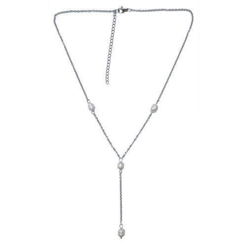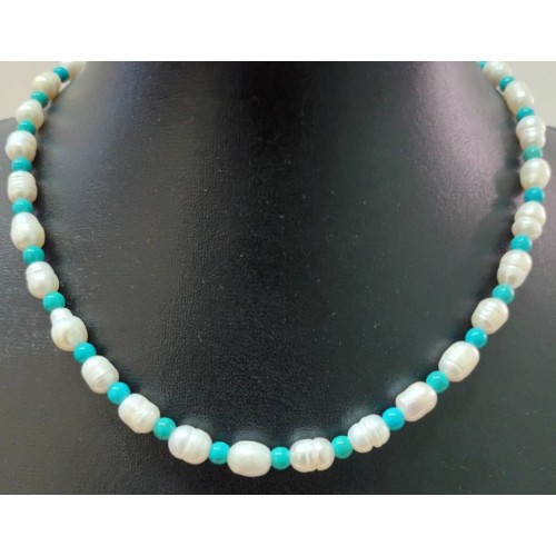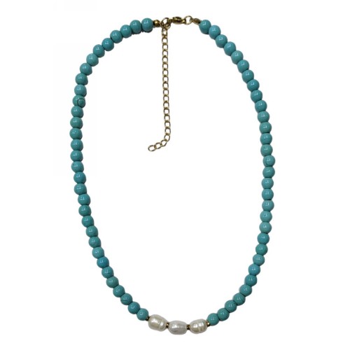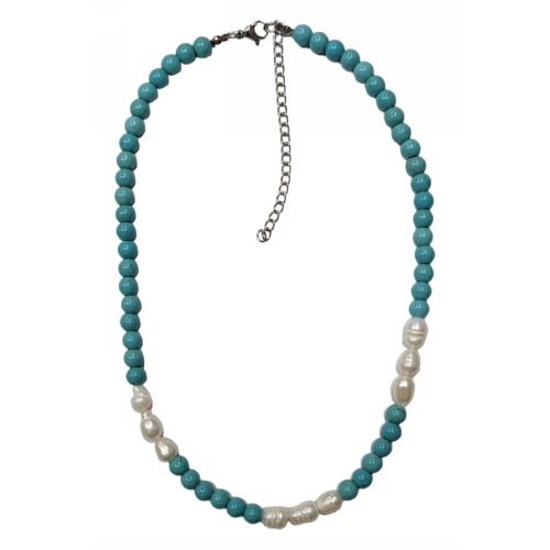 Κολιέ Με μαργαριτάρι και ημιπολύτιμη πέτρα Τυρκουάζ με ατσάλινες λεπτομέρειες ..