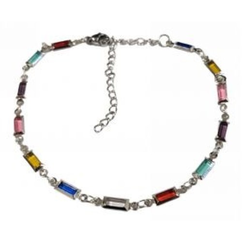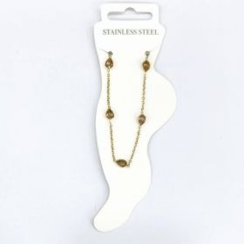 Βραχιόλι Ποδιού ατσάλινη αλυσίδα με γυαλί Μήκος: 20(+7)cm..
