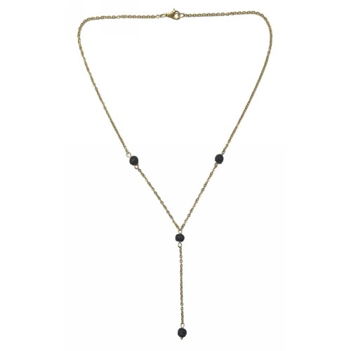 Kostibas 1014-937XA, Κολιέ, Ατσάλι, Πέτρα, Λάβα, Χρυσό