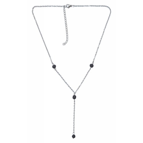 Kostibas 1014-937AA, Κολιέ, Ατσάλι, Πέτρα, Λάβα, Ασημί
