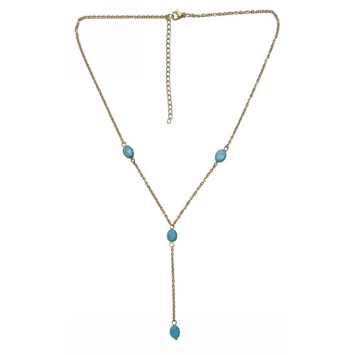 Kostibas 1014-936XD, Κολιέ, Ατσάλι, Χρυσό με Τιρκουάζ πέτρα