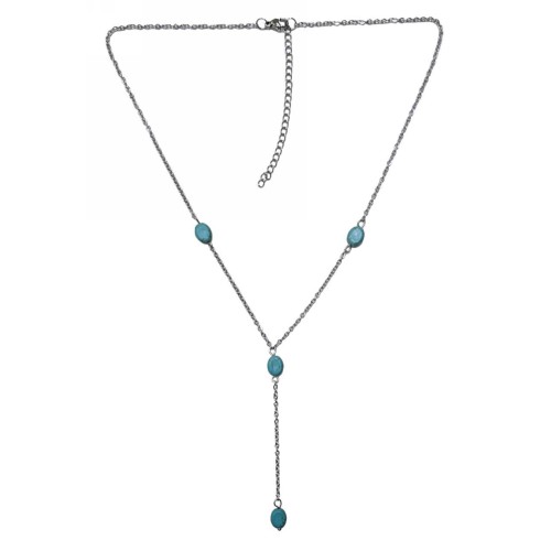Kostibas 1014-936AD, Κολιέ, Ατσάλι, ΤΕ, Ασημί με Τιρκουάζ πέτρα