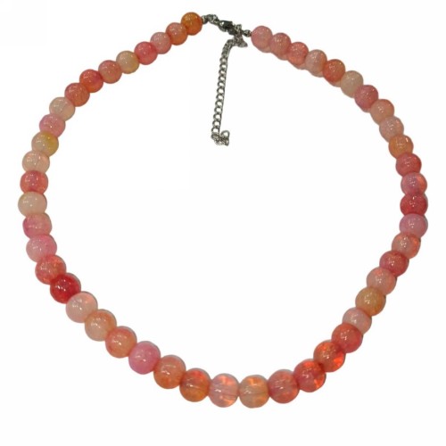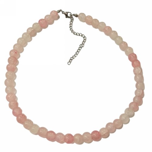 Κολιέ Με γυάλινη χάντρα, κούμπωμα και προέκταση  Stainless steel 304 Χρώμα: Ασημί  Εφέ Ροζ Χαλαζί..