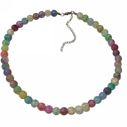 Κολιέ Με γυάλινη χάντρα, κούμπωμα και προέκταση  Stainless steel 304 Χρώμα: Ασημί/Πολύχρωμο  ..