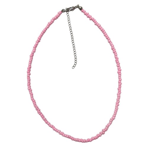 Κολιέ Ατσάλι Ατσάλι Με γυαλί Με χάντρα γυαλί ±3mm, μήκος:38+7cm ΧΡΩΜΑ:Ροζ..