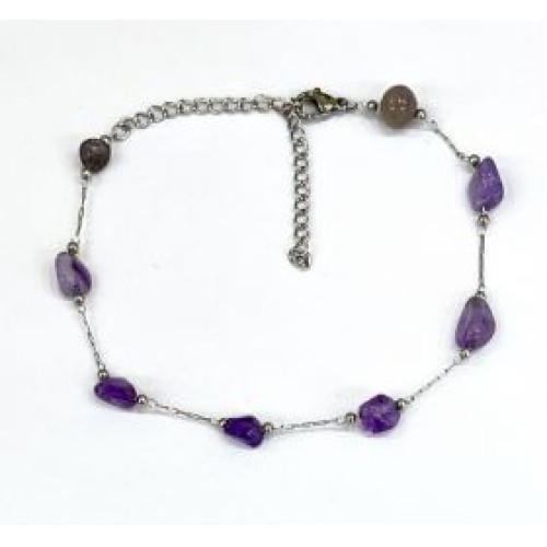 Kostibas 2013-909AJ, Βραχιόλι Ποδιού, Ατσάλι, Πέτρα, Ασημί/Μωβ