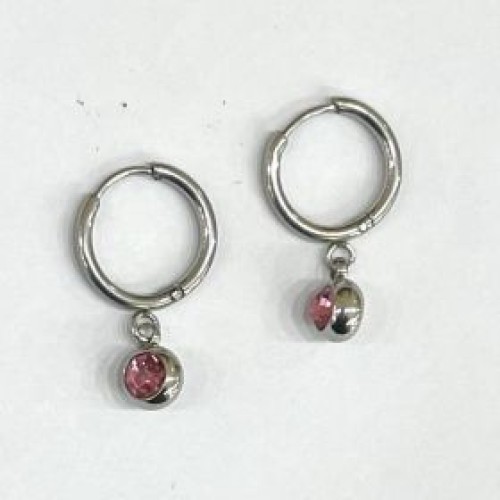 Σκουλαρίκια κρίκοι από ατσάλι με πέτρα 6mm..