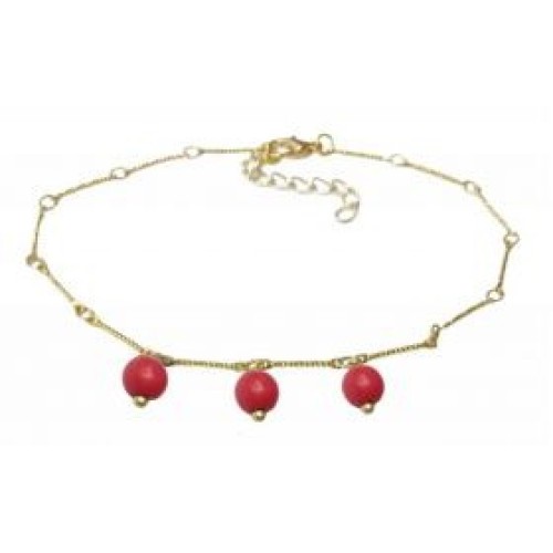 Kostibas 2014-720XE, Βραχιόλι Ποδιού, Ατσάλι, Πέτρα, Χρυσό/Κοραλί