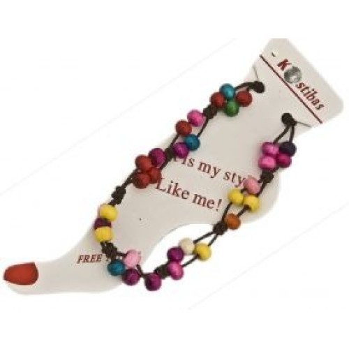 Kostibas 2039-020, Βραχιόλι Ποδιού, Σχοινί, Ξύλο, Πολύχρωμο