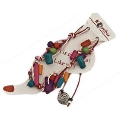 Kostibas 2039-017, Βραχιόλι Ποδιού, Σχοινί, Ξύλο, Πολύχρωμο