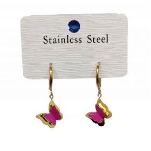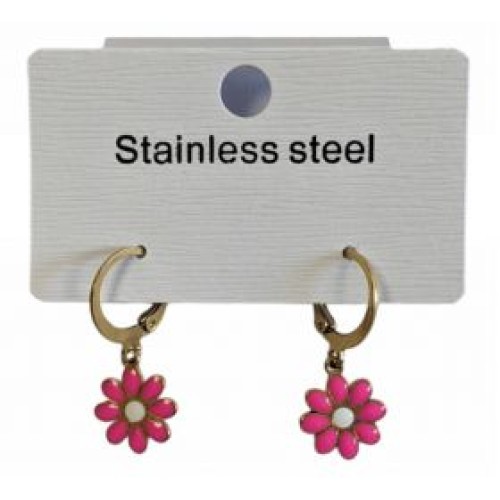 Kostibas 3113-731XF, Σκουλαρίκια Κρίκοι, Ατσάλι, Χρυσό/Φούξια