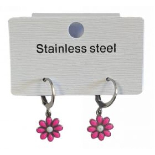 Kostibas 3113-738AF, Σκουλαρίκια Κρίκοι, Ατσάλι, Ασημί/Φούξια