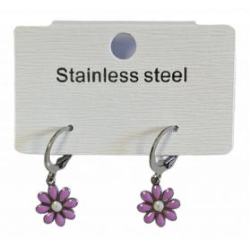Kostibas 3113-738AJ, Σκουλαρίκια Κρίκοι, Ατσάλι, Ασημί/Μωβ