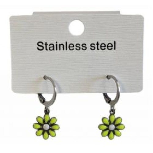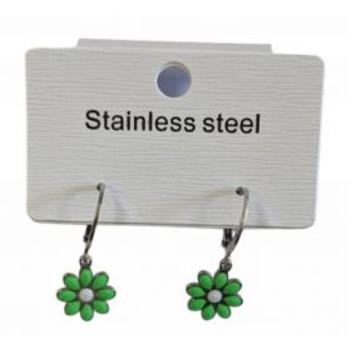 Kostibas 3113-738AP, Σκουλαρίκια Κρίκοι, Ατσάλι, Ασημί/Πράσινο