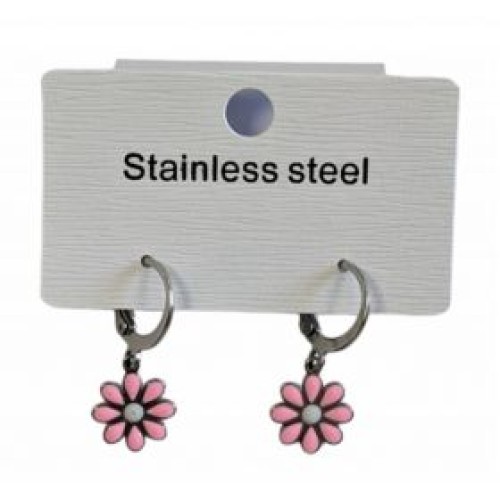 Kostibas 3113-738AR, Σκουλαρίκια Κρίκοι, Ατσάλι, Ασημί/Ροζ