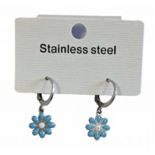 Kostibas 3113-731AT, Σκουλαρίκια Κρίκοι, Ατσάλι, Ασημί/Τιρκουάζ