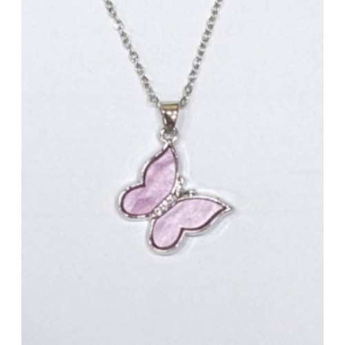Kostibas 1013-960AJ, Κολιέ, Ατσάλι, Με Μοτίφ, Λευκό, Με πεταλούδα μωβ