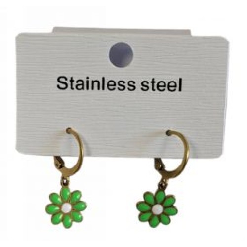 Kostibas 3113-738XP, Σκουλαρίκια Κρίκοι, Ατσάλι, Χρυσό/Πράσινο