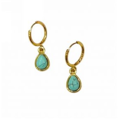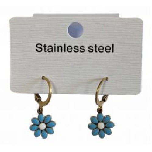 Kostibas 3113-738XT, Σκουλαρίκια Κρίκοι, Ατσάλι, Χρυσό/Τιρκουάζ