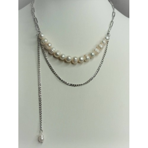 Kostibas 1013-771AL, Κολιέ, Ατσάλι, Με αλυσίδα και μαργαριτάρια, Ασημί