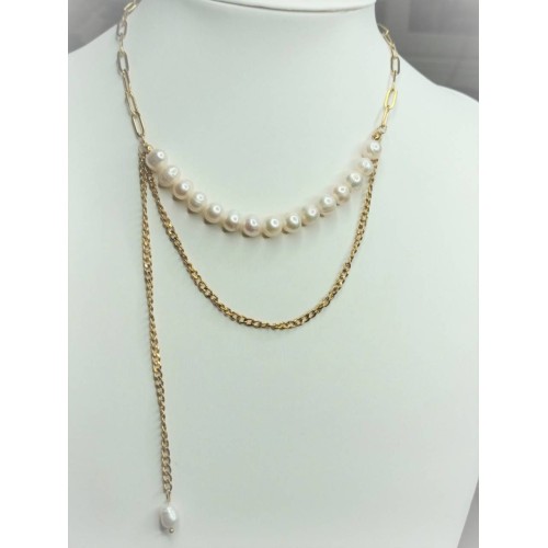 Kostibas 1013-771XL, Κολιέ, Ατσάλι, Με αλυσίδα και μαργαριτάρια, Χρυσό