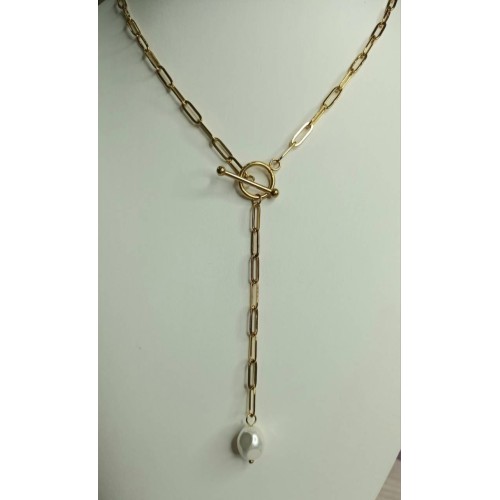 Kostibas 1013-774XL, Κολιέ, Ατσάλι, Με αλυσίδα και μαργαριτάρι, Χρυσό