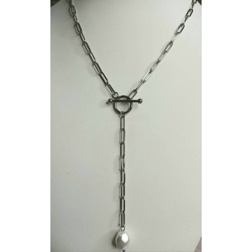 Kostibas 1013-774AL, Κολιέ, Ατσάλι, Με αλυσίδα και μαργαριτάρι, Ασημί