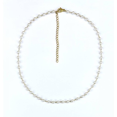 Κολιέ Ατσάλι Ατσάλι Με πέρλα με πέρλα 3mm ΜΗΚ:38+7cm ΧΡΩΜΑ:18k gold..