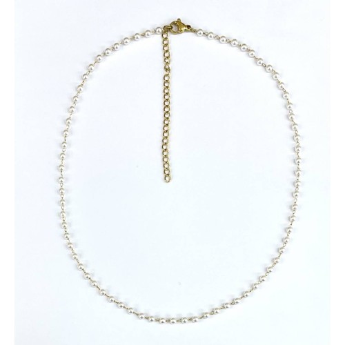 Κολιέ Ατσάλι Ατσάλι Με πέρλα με πέρλα 3mm ΜΗΚ:38+7cm ΧΡΩΜΑ:Steel colour..