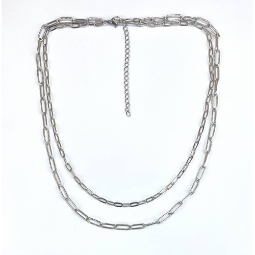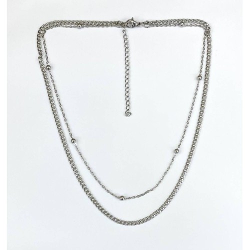 Κολιέ Ατσάλι Ατσάλι Μιξ Διπλή αλυσίδα 46cm,40cm+7cm ΧΡΩΜΑ:Steel colour..