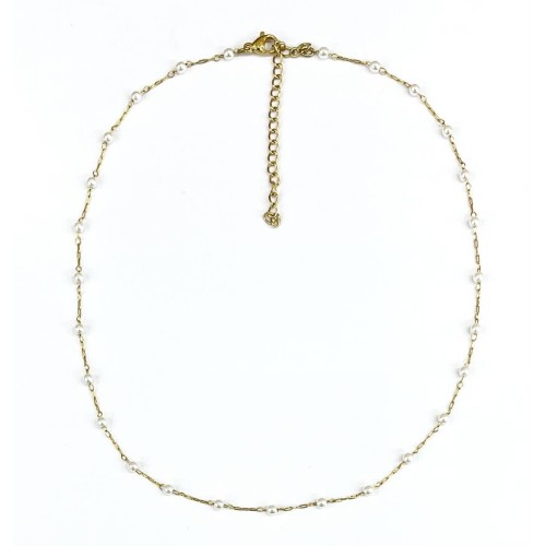 Κολιέ Ατσάλι Ατσάλι Με πέρλα με πέρλα 3mm ΜΗΚ:38+7cm ΧΡΩΜΑ:18k gold ..