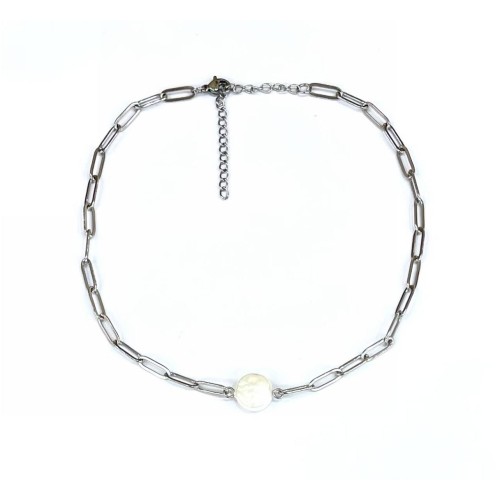 Κολιέ Με μαργαριτάρι Ατσάλι ΜΑΡΓΑΡΙΤΑΡΙ MHK:32+7cm..